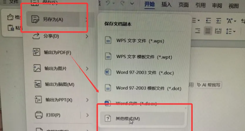 1.打开word文档,左侧找到“文件”,找到“另存为”,点击“其他格式”,找到下方的“文件类型”