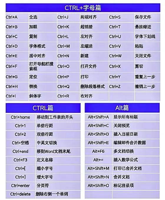 Word常用快捷键