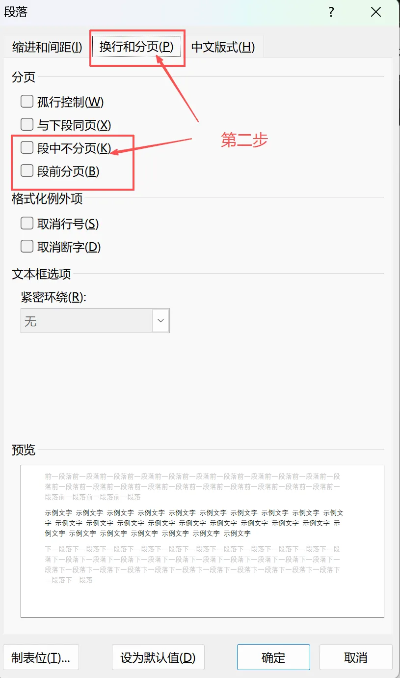 ①如果是小标题前或文中段落前出现空白页,光标放空白处 → 段落 → 换行和分页 → 取消勾选段前分页。