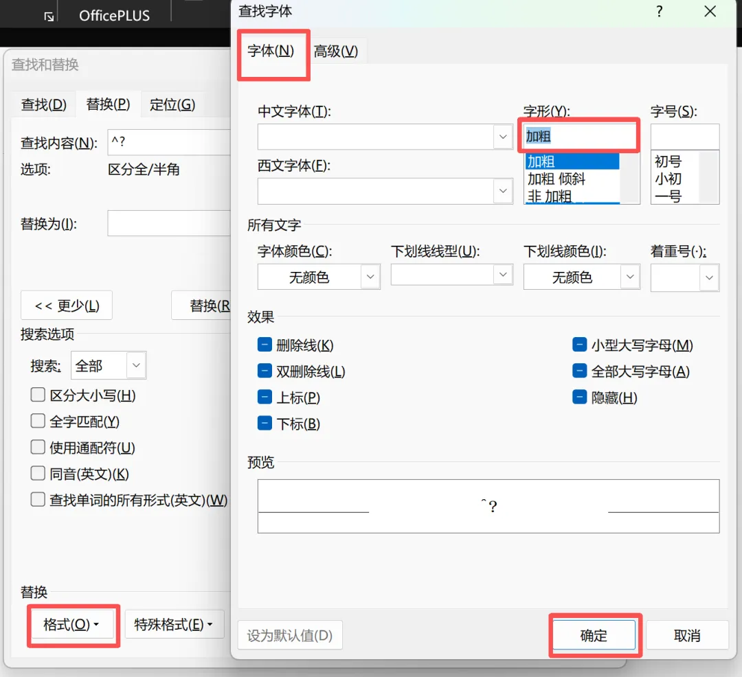 例如:要批量把文中加粗的文字变为红色,按 Ctrl+H 打开替换 → 点更多 → 光标放查找内容,点格式→字体,选加粗 → 光标放替换为,点格式→字体,设为红色 → 点全部替换。
