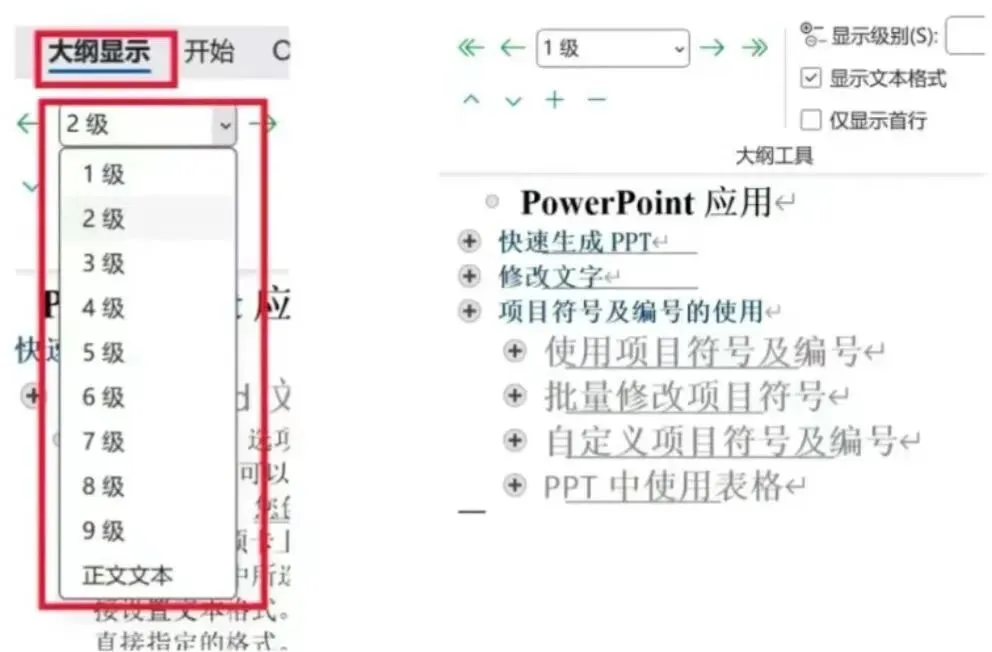 用大纲模式设置级别