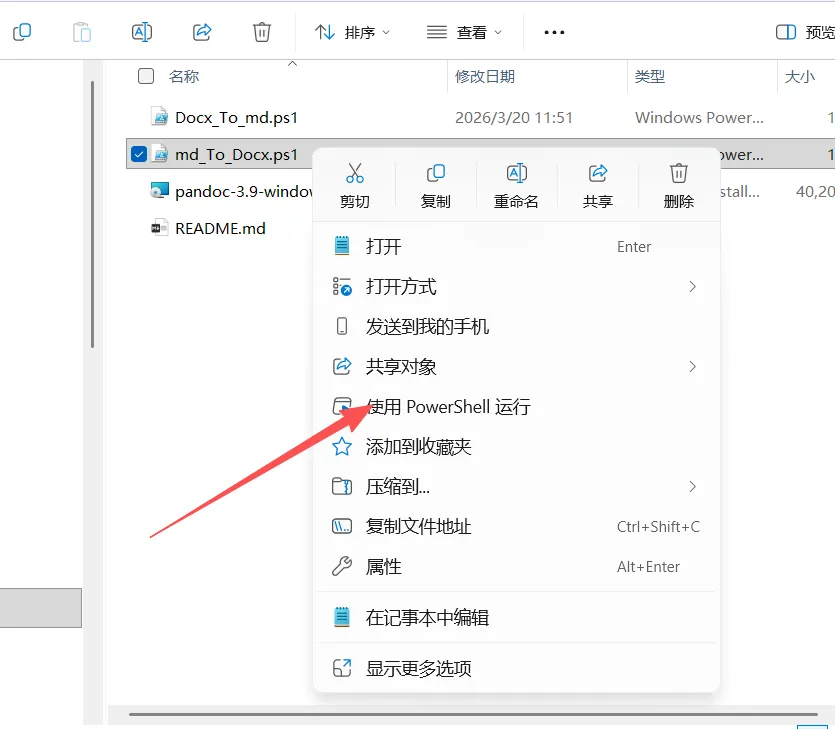 2、此处注意是右键单击,选择【使用PowerShell运行】
