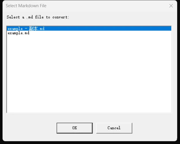 5、系统帮你找出你选择的文件夹下所有的md,选择要转换的,点击【OK】