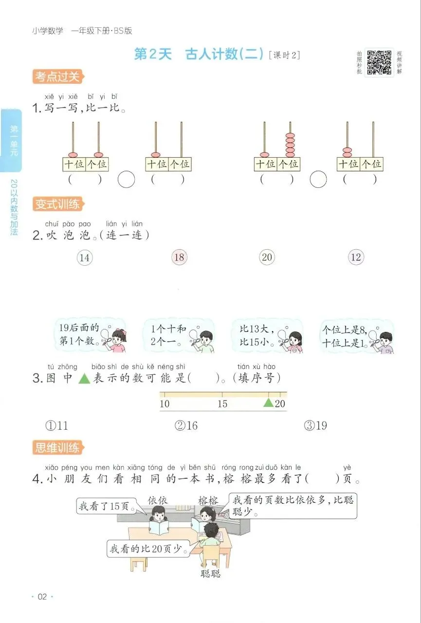 一年级数学下册北师版26春《一本课后小练习》电子版免费下载!