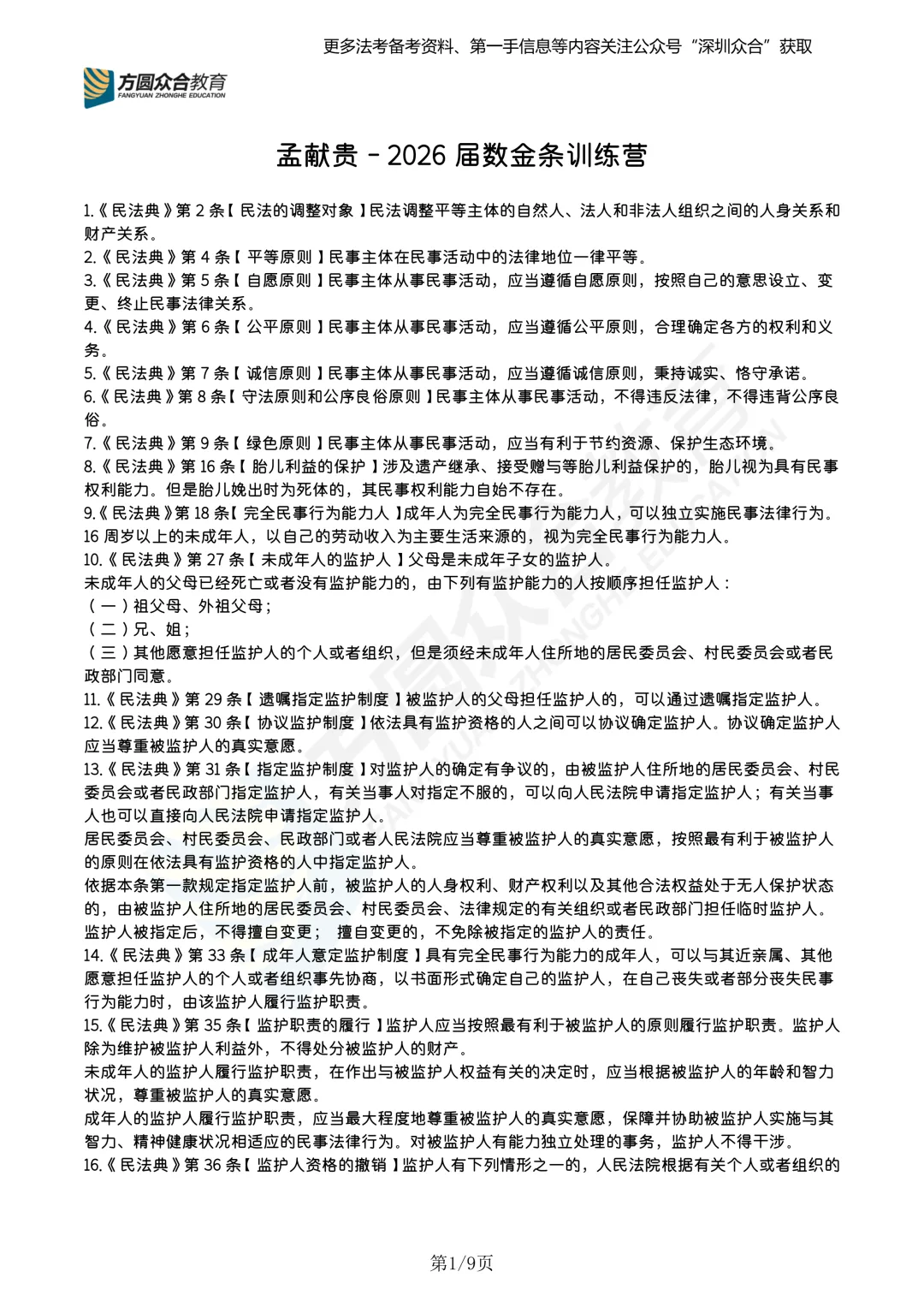孟献贵老师提醒:主观题备考必须高度重视法条!通过每天阅读法条原文,培养法律思维和法言法语表达能力。
