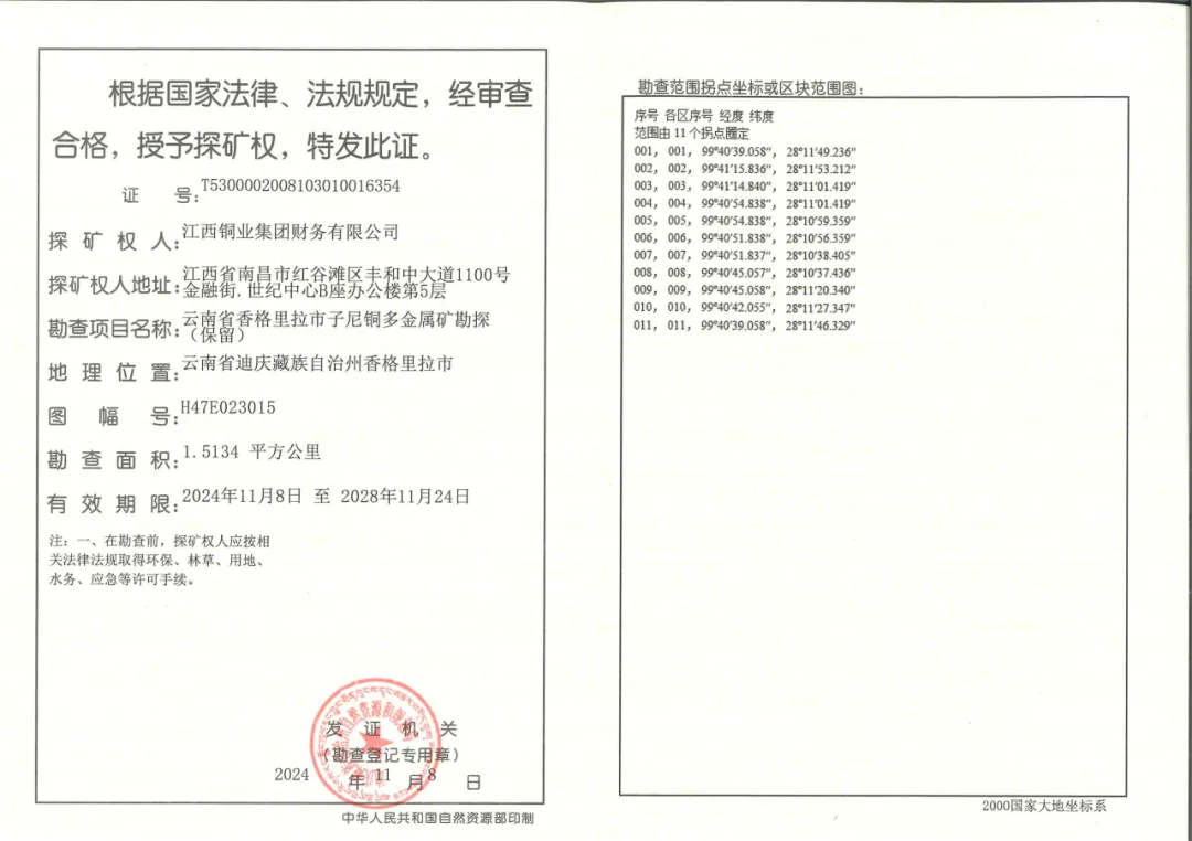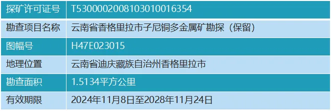 项目名称:云南省香格里拉市子尼铜多金属矿勘探权转让