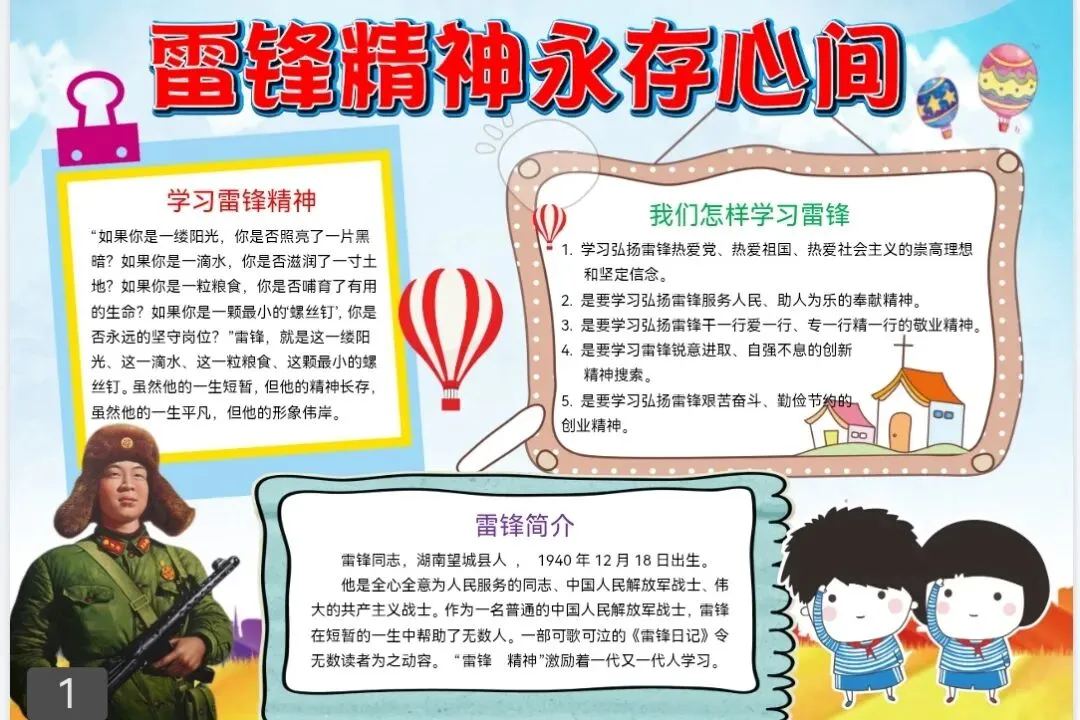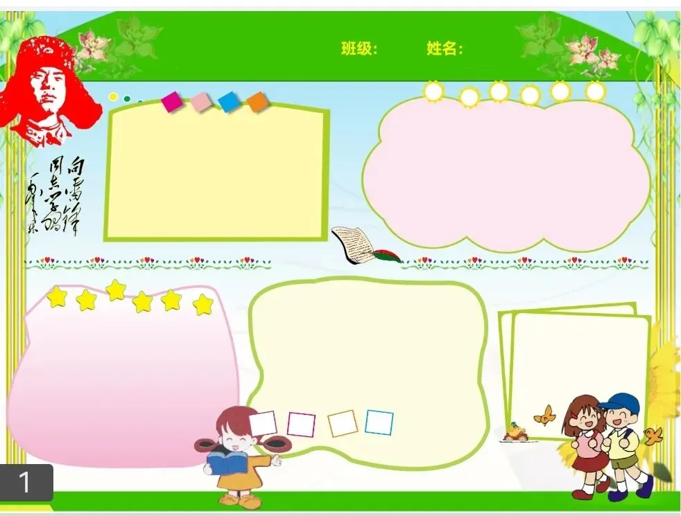 雷锋手抄报模板+空白线稿+专题文字(免费下载)