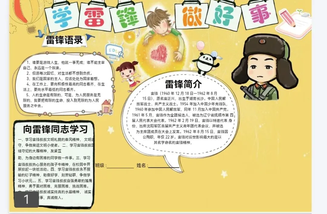 学雷锋手抄报模板+文字素材打包!线稿可涂色,文字可直接抄,家长省心,孩子省力,打印即用。建议收藏保存