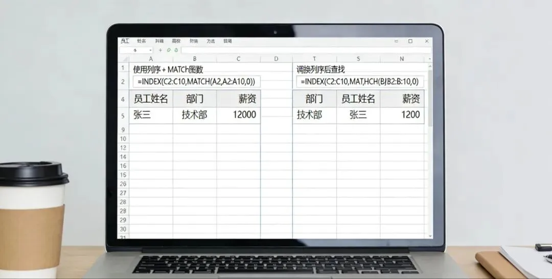 技巧2:INDEX + MATCH 万能查找,不受列序限制