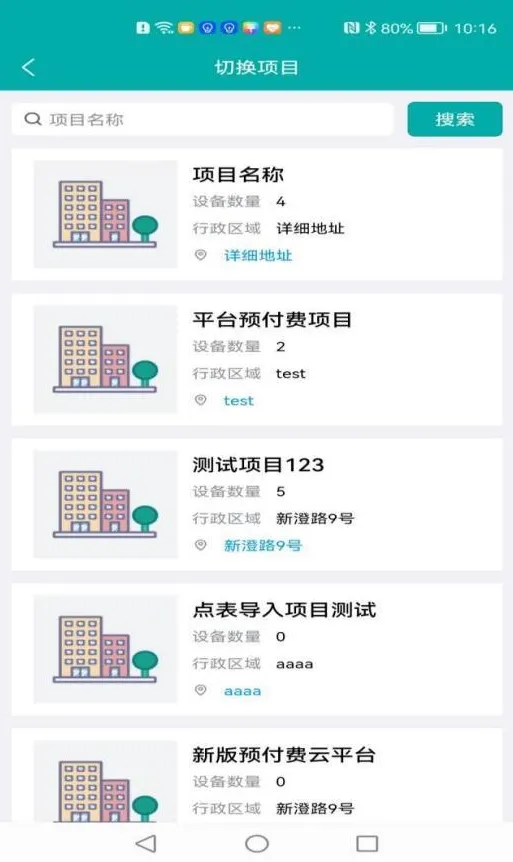 用户点击左上角按钮,跳转到项目切换页面,如图 3-1。根据项目名称搜索,选择项目后跳转回到首页,进入相关菜单,查询该项目数据。