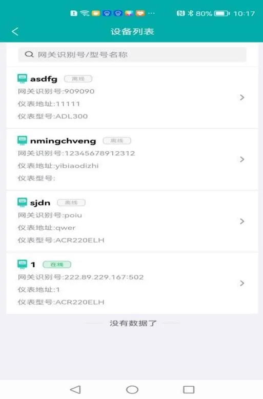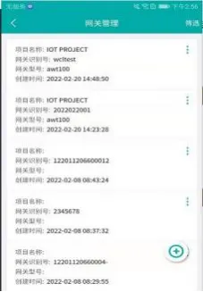 网关管理页面展示了关联项目下所有的仪表信息,信息包括项目名称、区域位置、网关识别号、网关型号、创建时间等,可根据网关识别号、网关型号查询对应网关