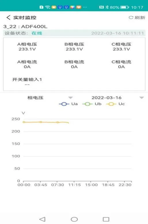 三相不平衡度页面以曲线图展示了仪表的三相电压和三相电流数据,以及对应三相电流和三相电压的不平衡度。用户可根据需要查询指定时间指定区域仪表的三相不平衡数据