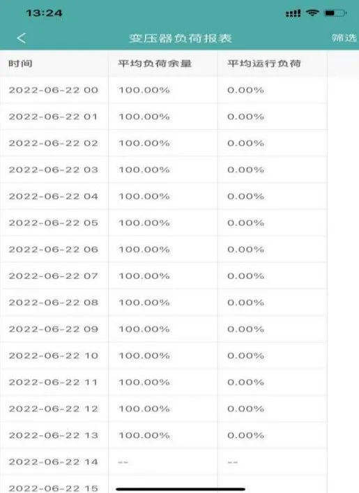 变压器负荷报表主要统计项目下变压器平均负荷余量以及运行负荷情况,用户可选择项目下变压器及日期进行查询