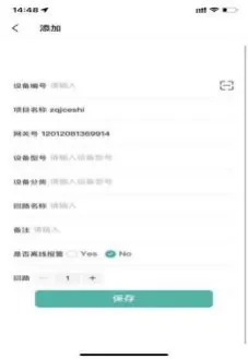 绑定成功后,可以对已有设备进行编辑,也可以点击添加进行新增设备,再次扫描设备的二维码,填写设备型号,设备分类,回路名称等信息,点击保存,即添加成功
