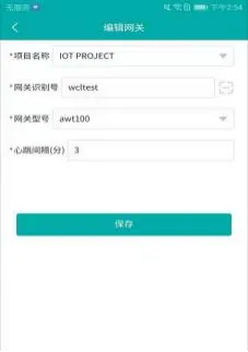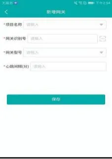 点击新增按钮,进入网关新增页面,项目名称,网关识别号,选择网关型号,心跳间隔为必填,点击保存即可创建网关,编辑操作方法与新增一致,