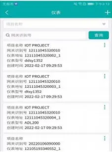 电表管理页面展示了关联项目下所有的电表信息,信息包括项目名称、回路名称、网关识别号、仪表地址、仪表型号、创建时间等,可根据网关识别号和项目名称查询对应仪表。