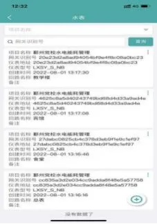 仪表管理页面展示了关联项目下所有的水表信息,信息包括项目名称、区域位置、网关识别号、仪表地址、仪表型号、创建时间等,可根据网关识别号和项目名称查询对应水表,