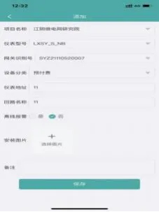 点击新增按钮,进入电表新增页面,选择项目名称,网关识别号,仪表型号,输入仪表地址、回路名称、电流电压变比,是否离线报警,点击保存即可创建仪表,编辑操作方法与新增一致