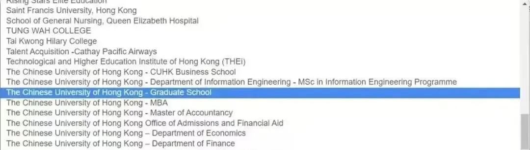 按提示填写个人信息,并在院校列表中选择“香港中文大学研究生院”,确认信息无误后提交申请。信息一旦提交无法修改,务必反复核对。