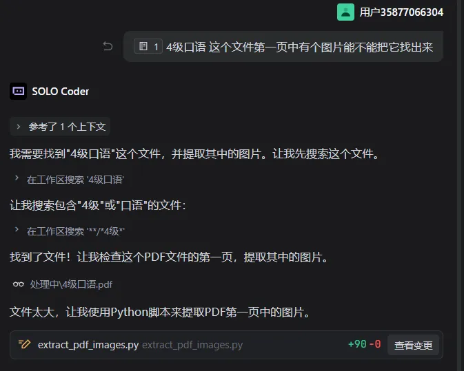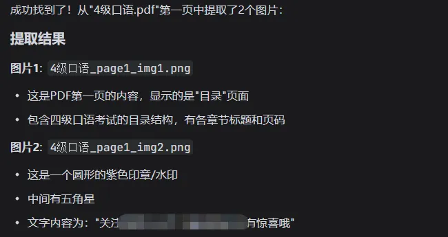 第一句让AI提取PDF第一页中的图片,文件太大了,于是直接给写了个脚本。