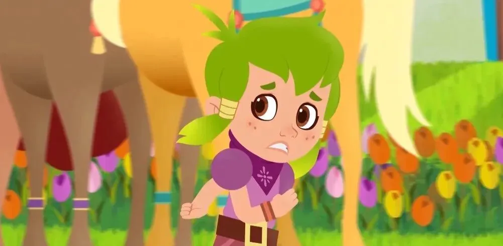 奈拉满心自责,觉得自己把迎宾任务搞砸了,但同伴的提醒让她恍然醒悟——其实不该帮薇罗用遮掩的办法,而应助力她为自己的独特发色感到骄傲。就像王国里的其他人,比如教练爵士的胡子、大块头的角,还有蓝的尾巴,每个人都独具特色。