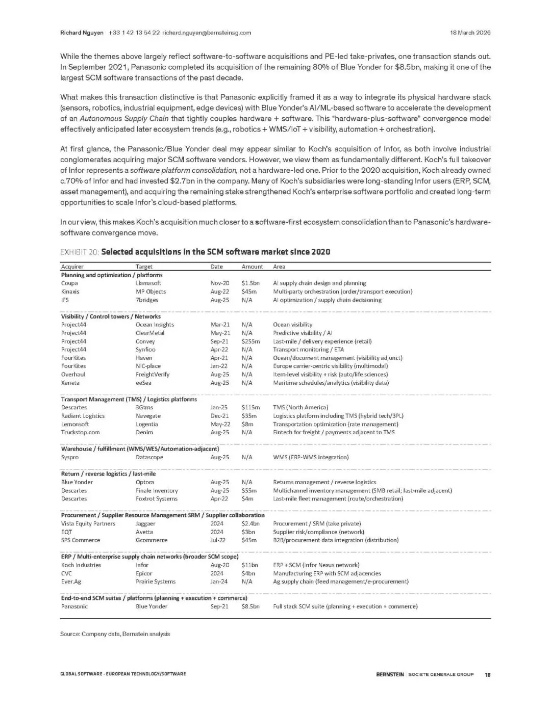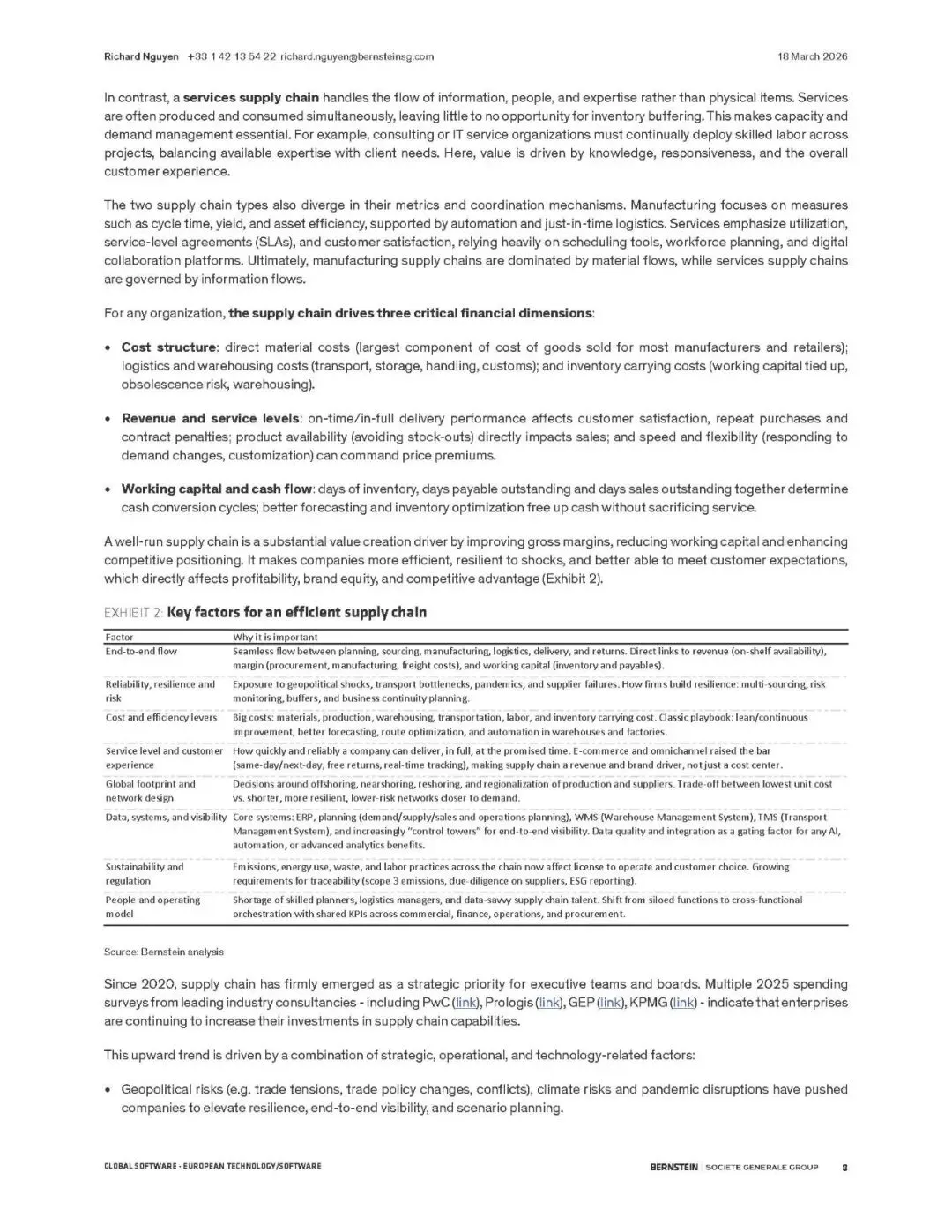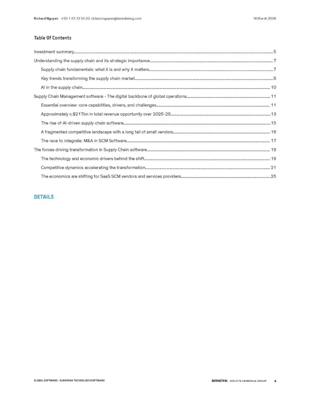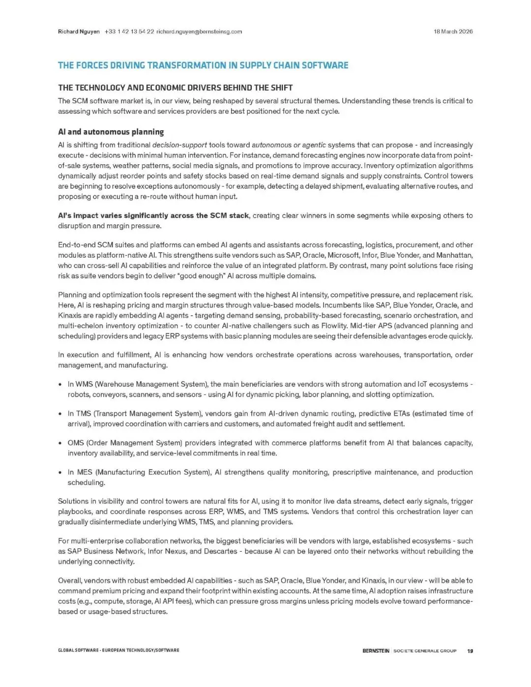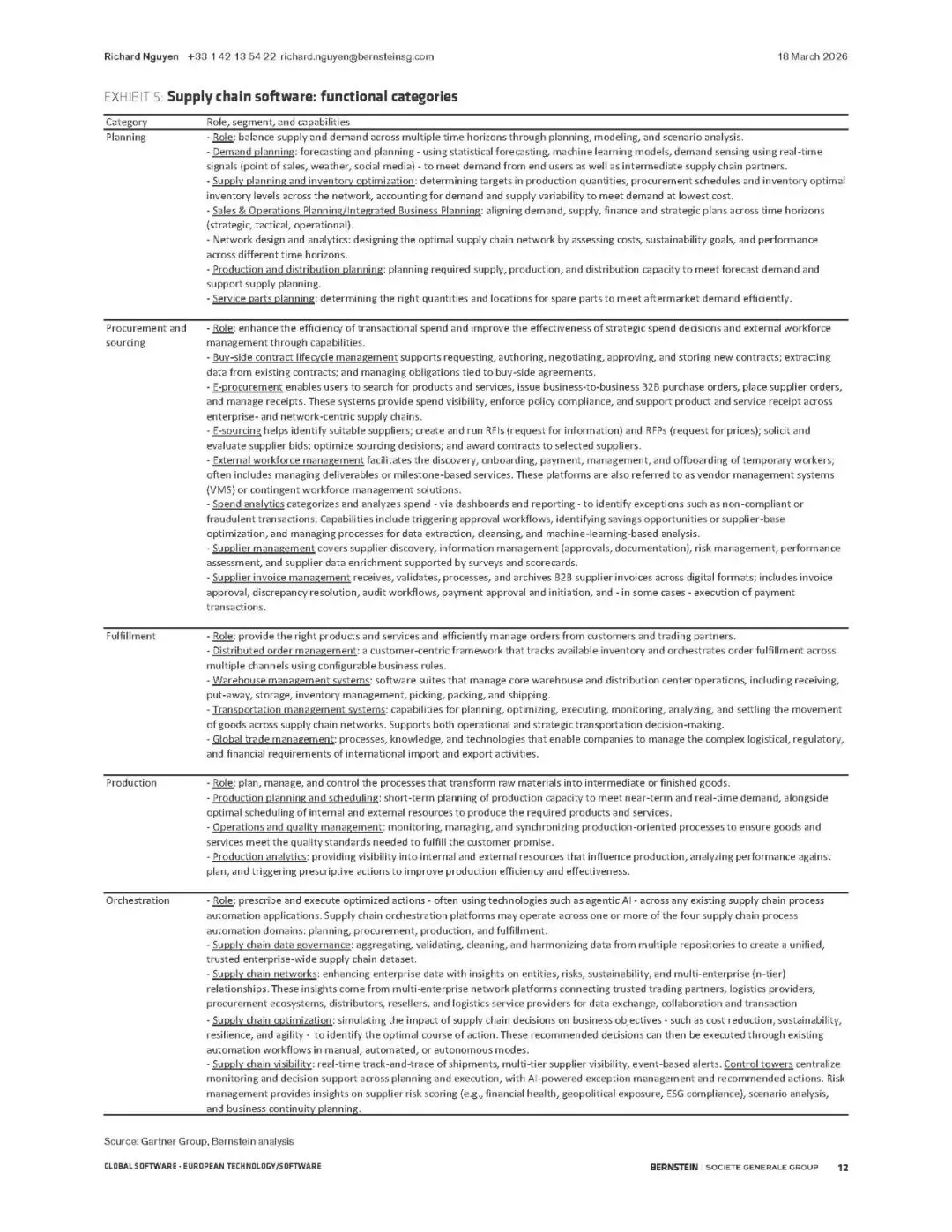 伯恩斯坦报告指出,供应链管理(SCM)软件正迎来由AI驱动的超级周期。全球供应链因地缘、通胀和ESG要求而重构,SCM软件成为核心数字支柱。预计市场规模将从2024年的330亿美元翻倍至2029年的660亿美元,2026-2029年累计收入机会达2170亿美元。