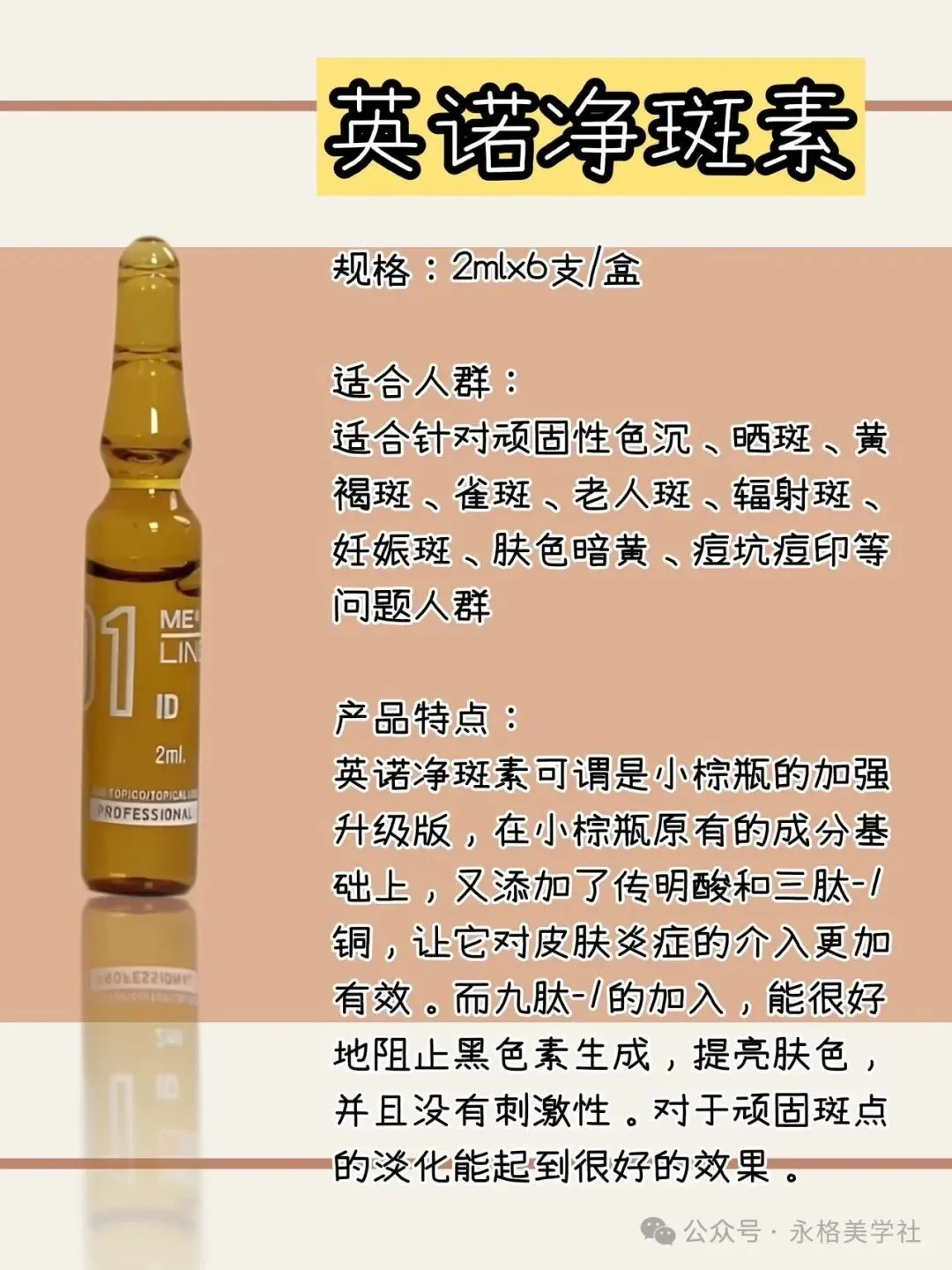 功效:抑制黑色素细胞活性、预防新斑;