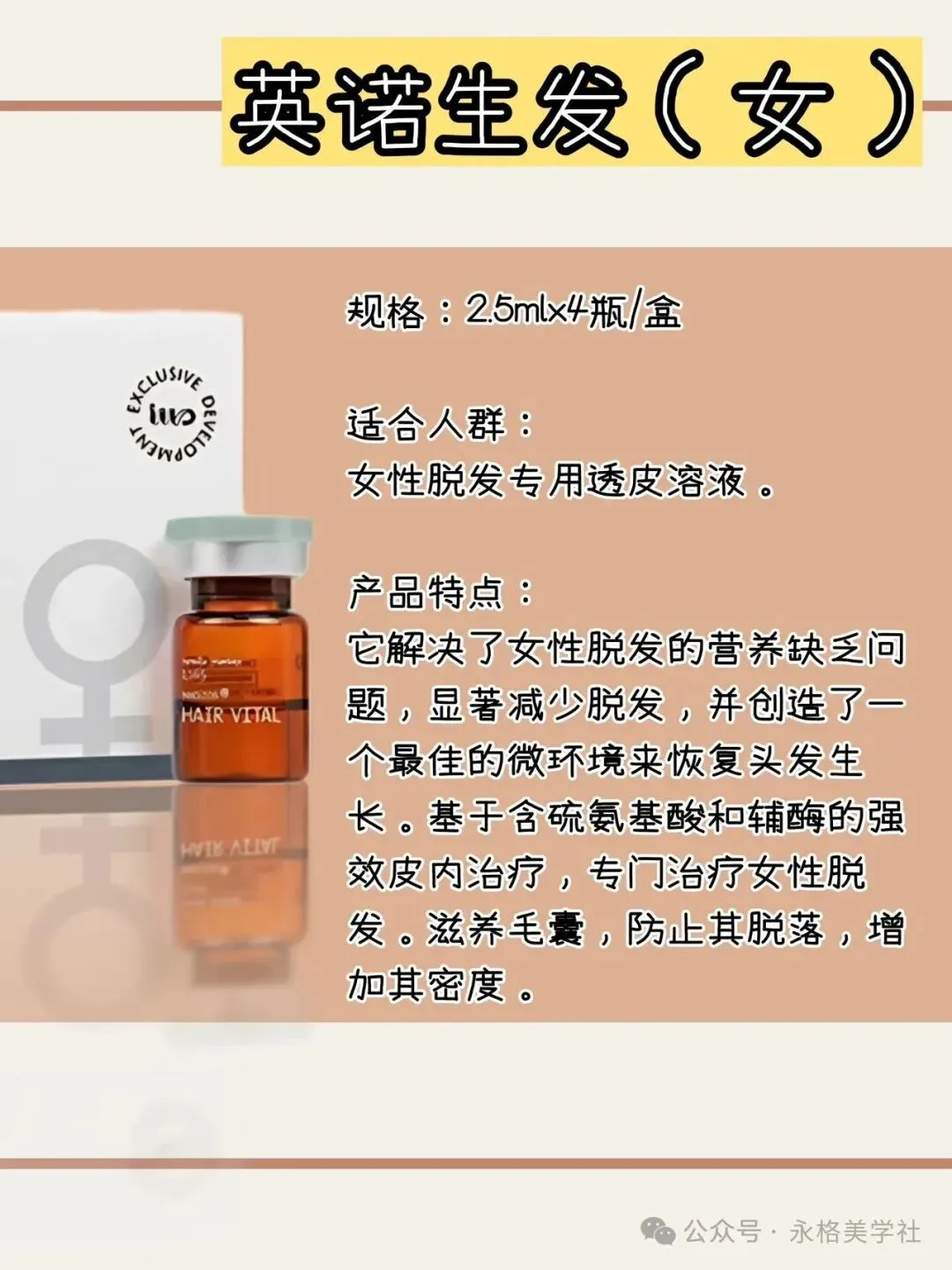 • 适用:女性弥散性脱发、产后/压力性脱发、头发细软脆弱、雄激素性脱发•