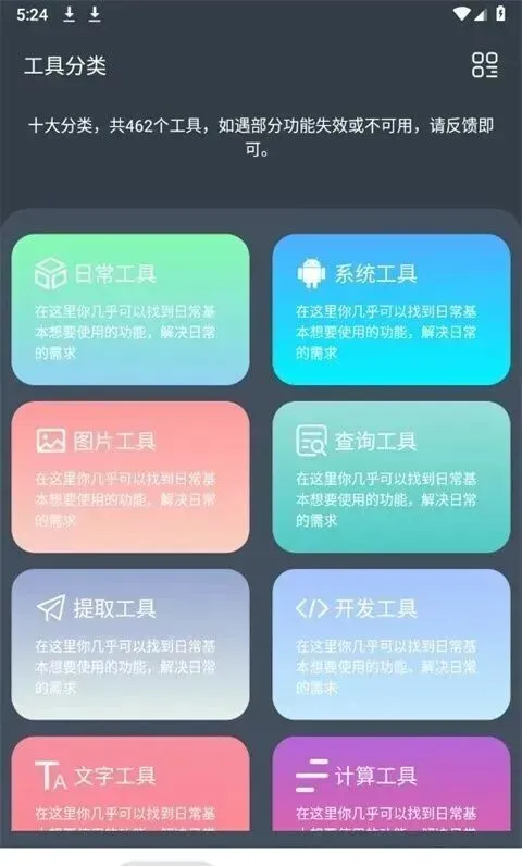 神奇工具app是一款非常实用的手机多功能工具箱软件,涵盖了各种手机常用的小工具,包括文字、图片、音频处理、清理、文件管理、计算、查询等上百种,能够满足用户的生活和工作中多方面的需求,让工作学习更高效。