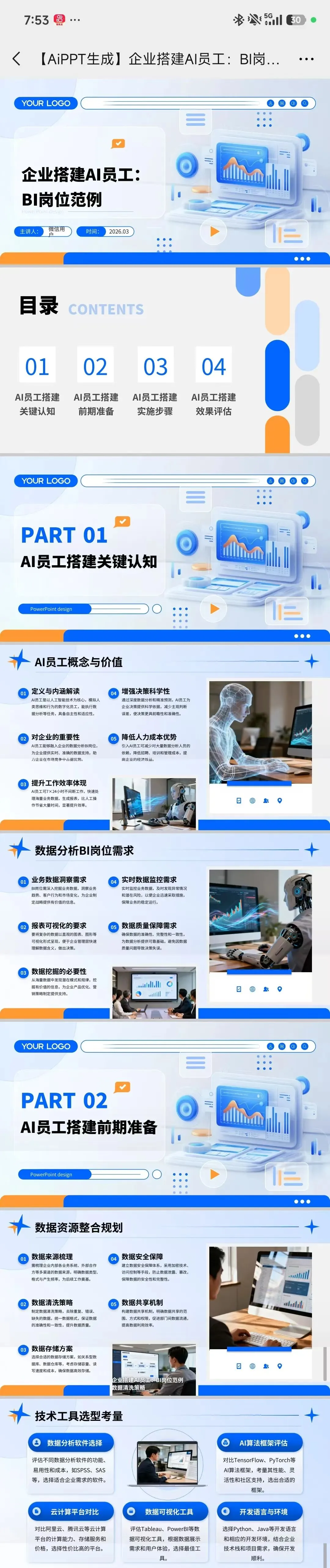 作为字节跳动旗下的 AI 助手,豆包的表现堪称惊艳。输入指令后,不到 10 分钟就生成了一份 20 页的 PPT,内容逻辑清晰,从概念到落地,再到案例分析,一应俱全。