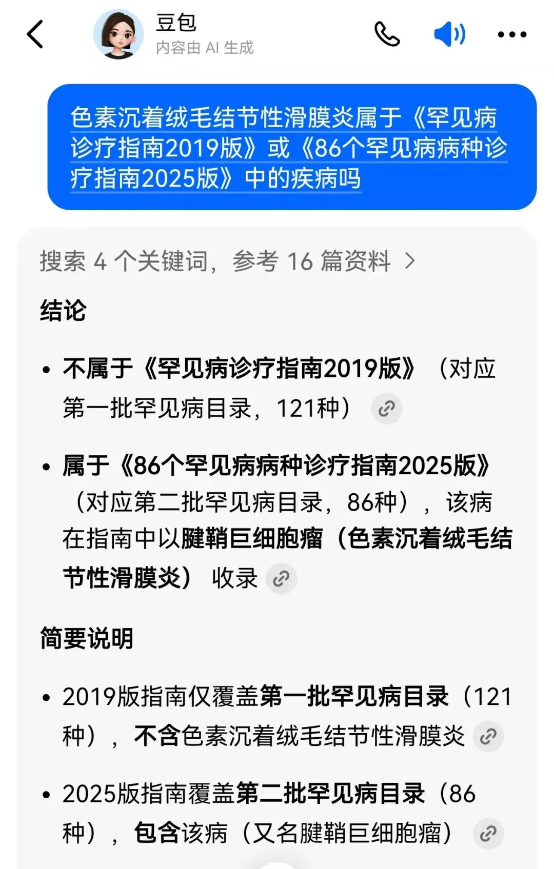 所以,阿培用豆包搜索了一下,果然该问题被列入《86个罕见病病种诊疗指南2025版》中。