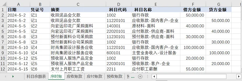 工作目标:从被审计单位获取科目余额表、序时账数据,将其按固定格式粘贴至工作表之后,可以实现如下看账功能:
