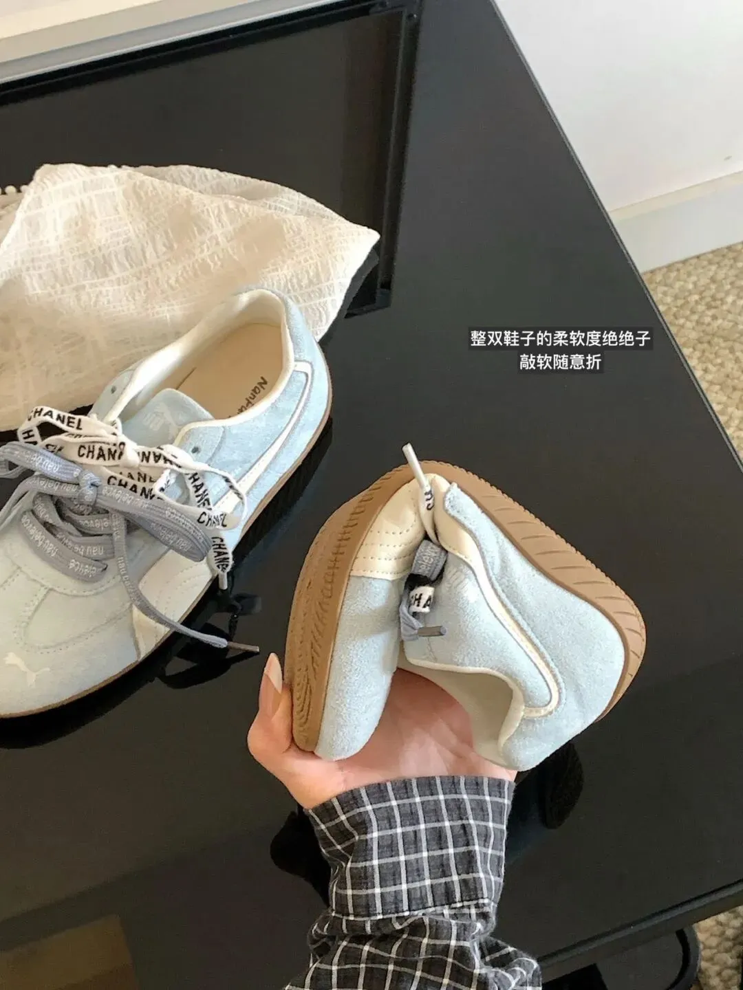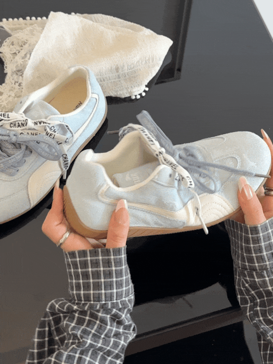 ✅ 细节拉满:双鞋带设计(字母印花+纯色鞋带),可盐可甜,随便系都好看,麂皮质感超高级