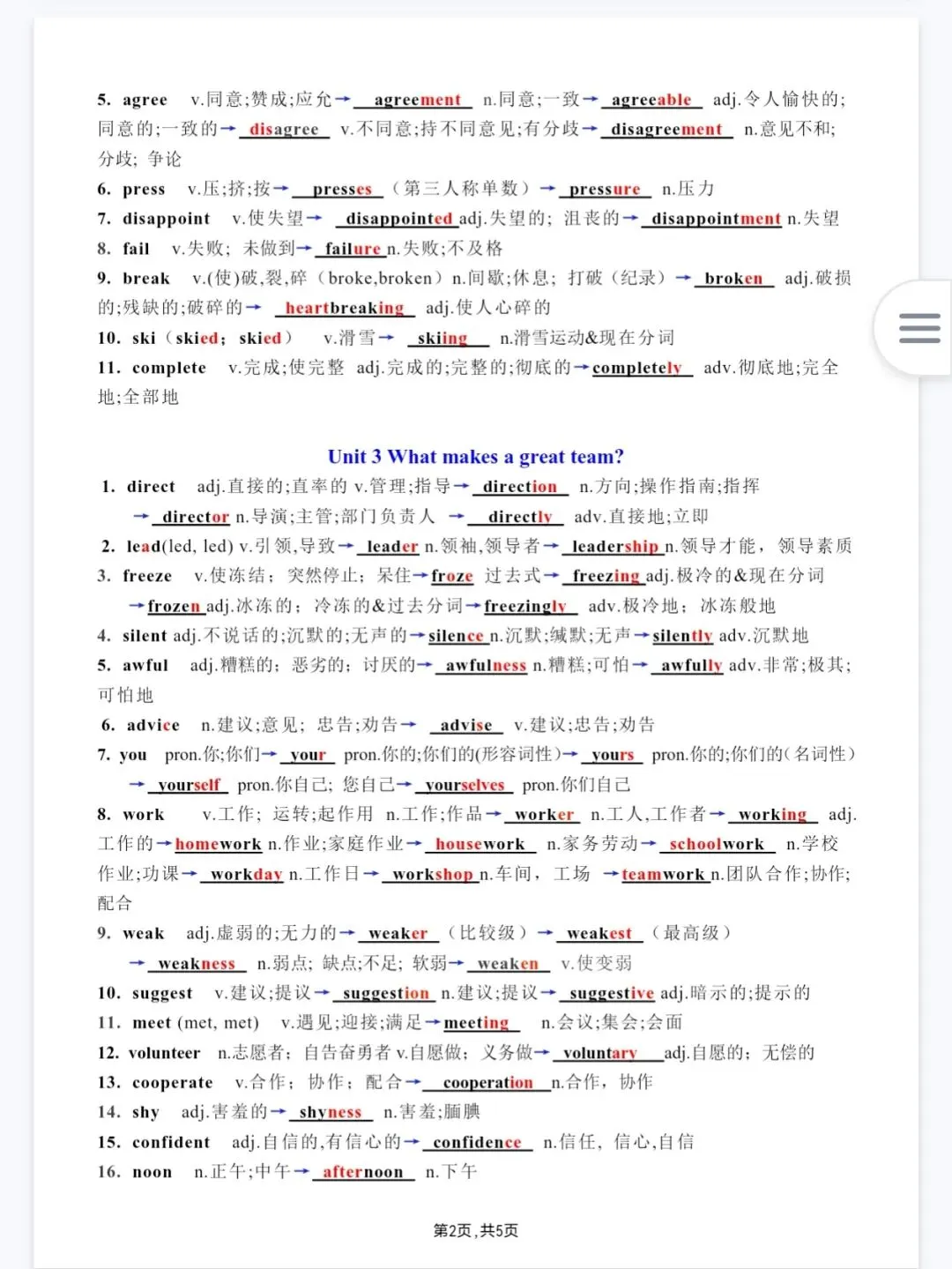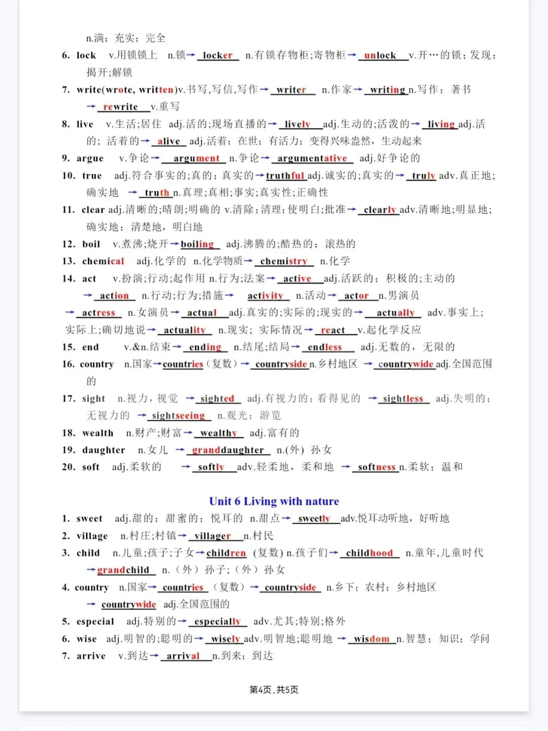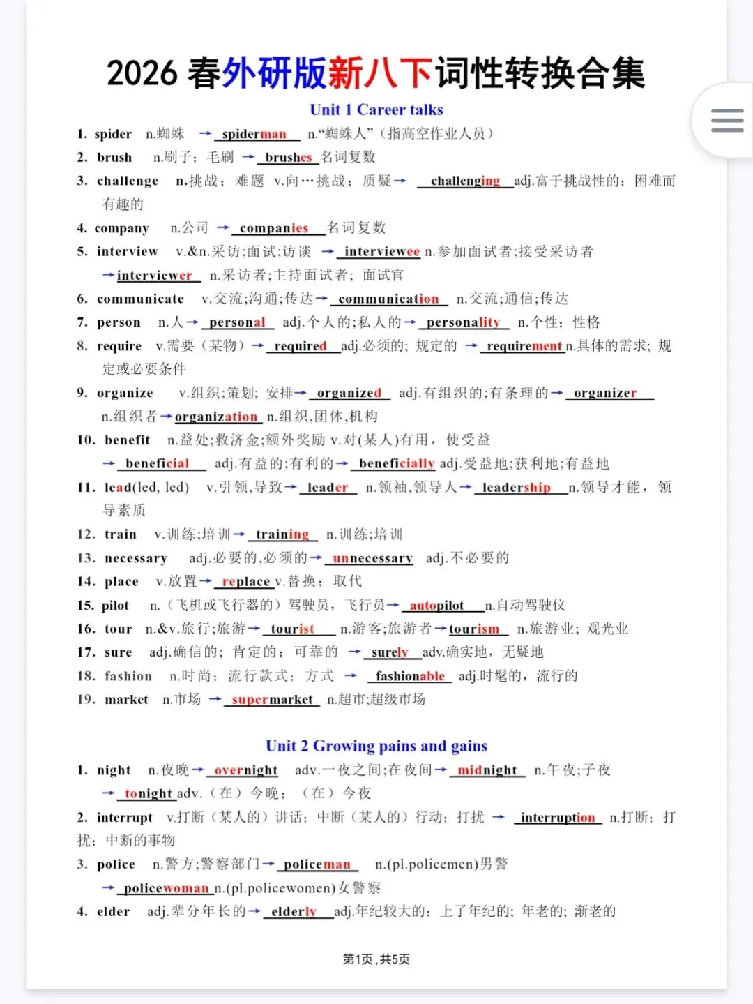 (文末可下载)2026外研版八下英语unit1-6词性转换