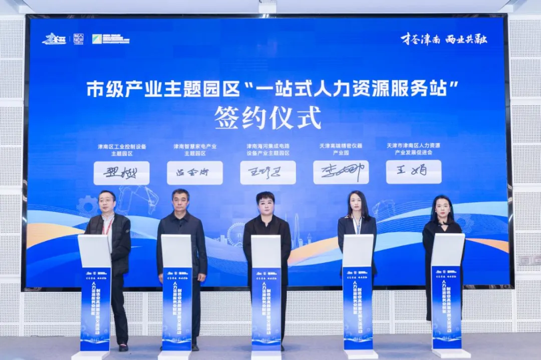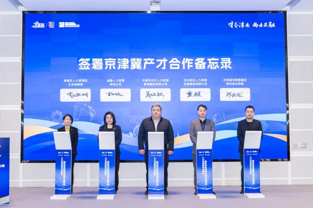 会上,津南区人社局、海教园与京津冀知名人力资源服务机构共同签署京津冀产才合作备忘录,精准服务制造业引才聚才。天津市智能制造装备行业协会联合产业园区、制造业企业、高校院所、人力资源服务机构共同成立招聘用工联合体,旨在解决制造业企业结构性用工难题,实现用工余缺调剂、技能共享。