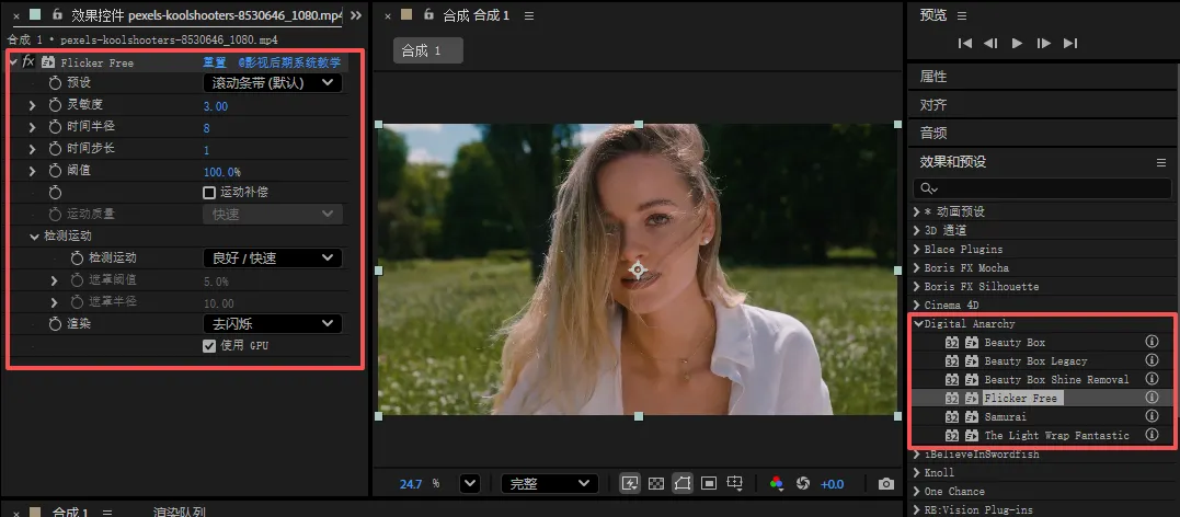 Flicker Free v3.0.4 视频去闪烁插件,彻底解决视频因前期拍摄导致的画面闪烁、频闪等问题。