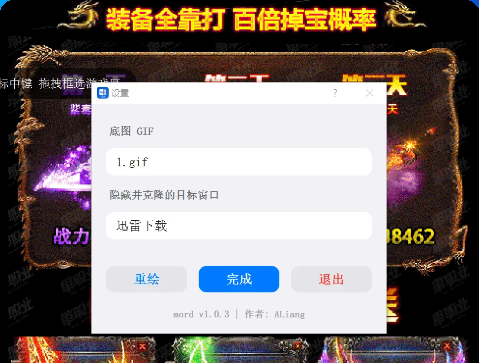 :外观是个带 GIF 底图的圆角小窗口(自带 5 款,支持自定义本地gif),看起来就像个垃圾广告弹窗。 - 无缝交互