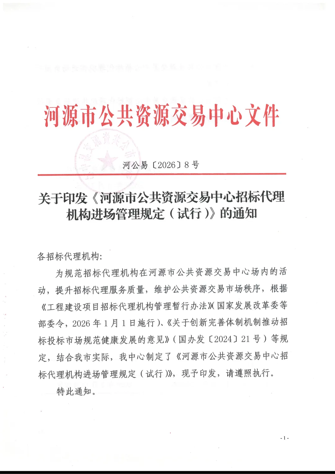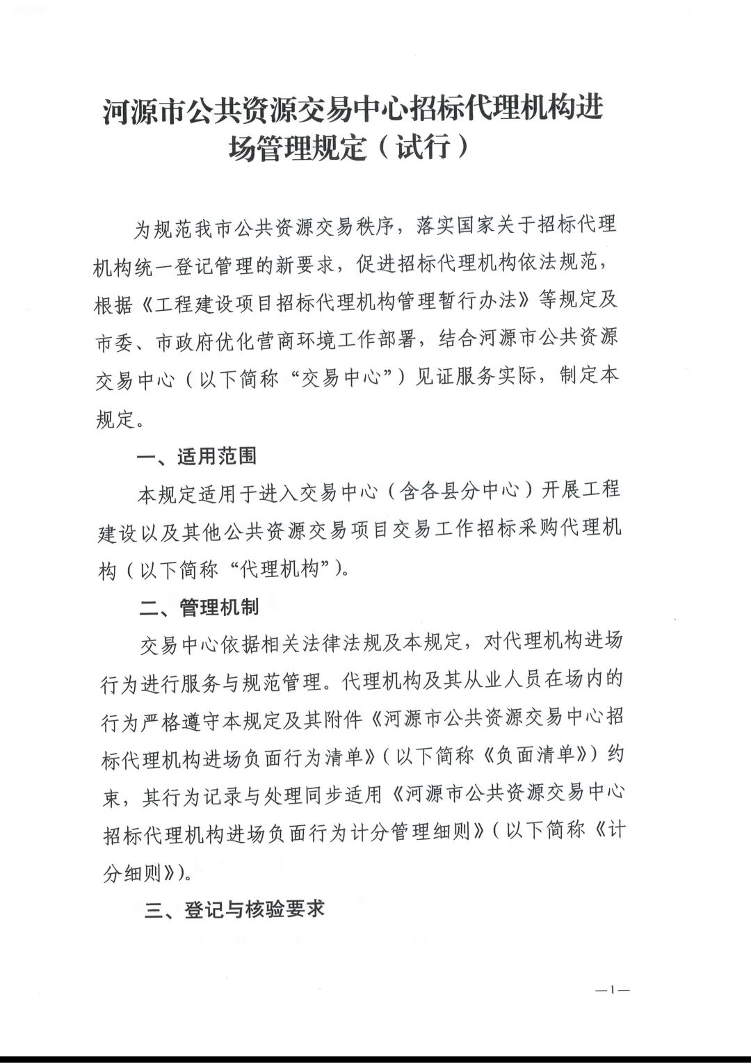 政策法规 ▎ 关于印发《河源市公共资源交易中心招标代理机构进场管理规定(试行)》的通知