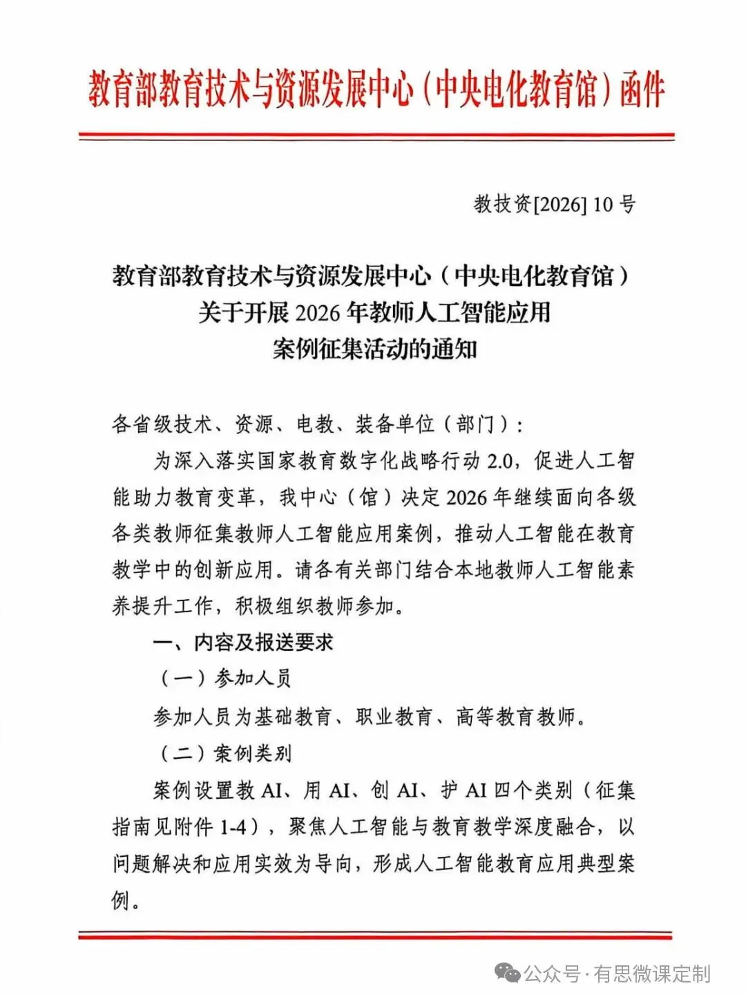 教育部教育技术与资源发展中心(中央电化教育馆)关于开展2026年教师人工智能应用案例征集活动的通知