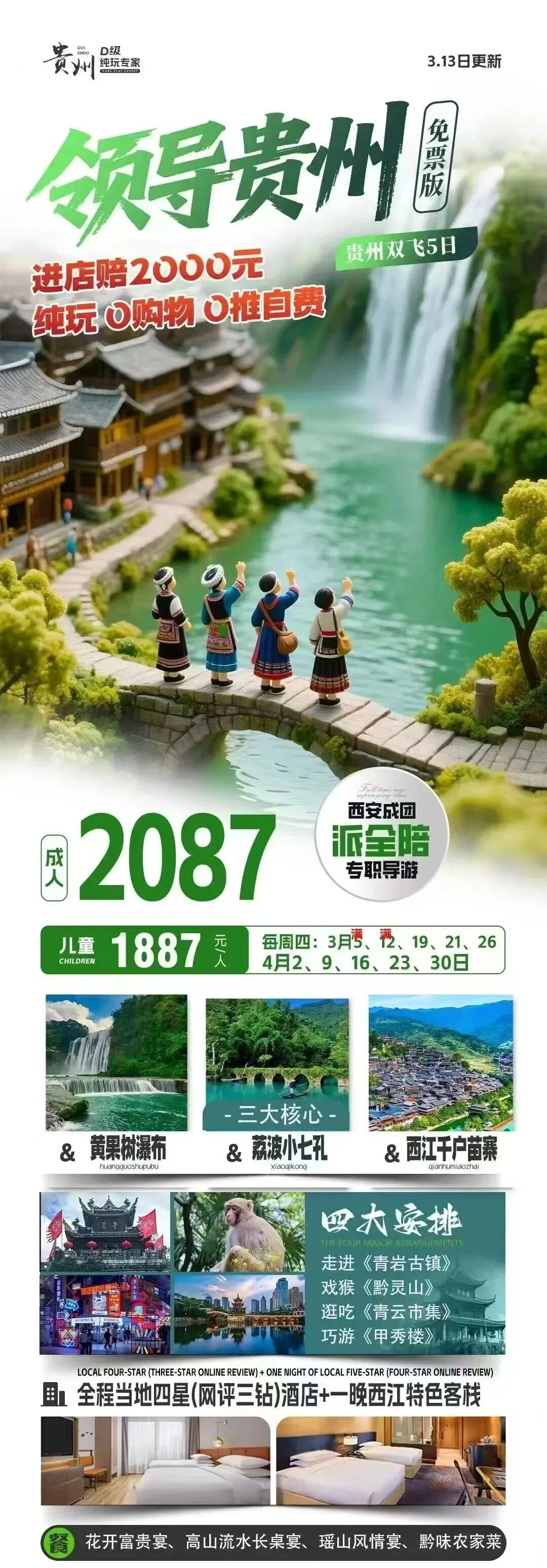 贵州双飞六日游1687元/人