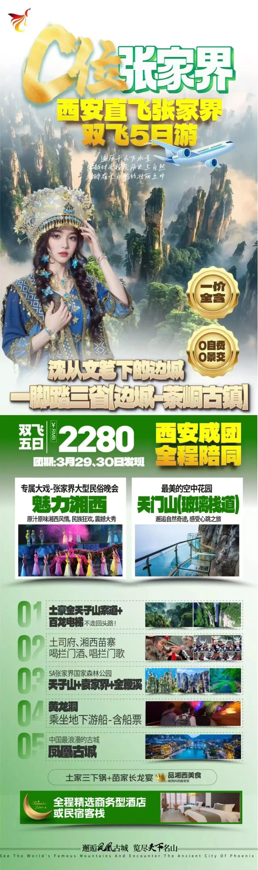 张家界双飞五日游2280元/人