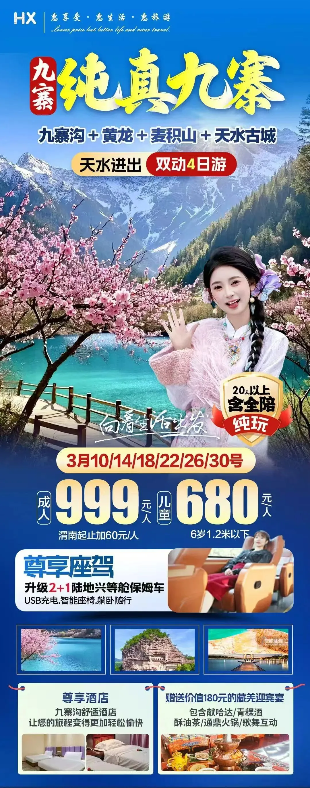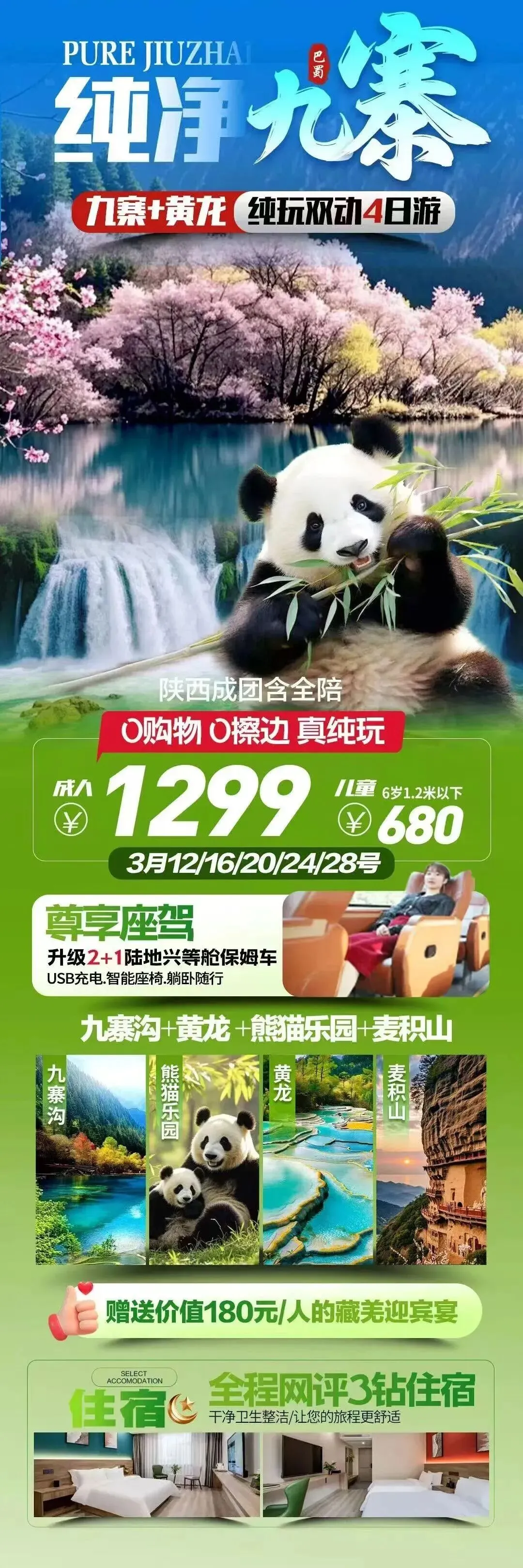 九寨沟+黄龙+麦积山+天水古城