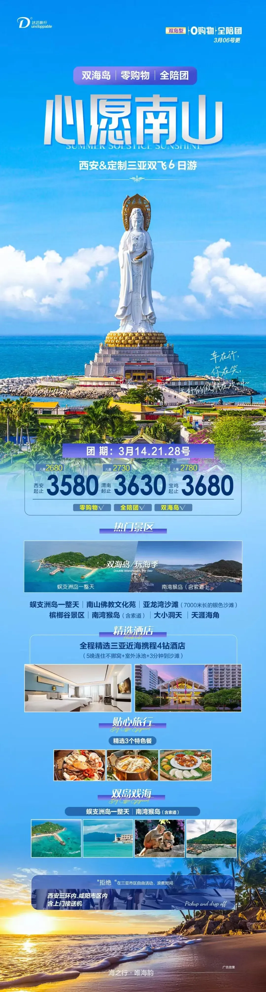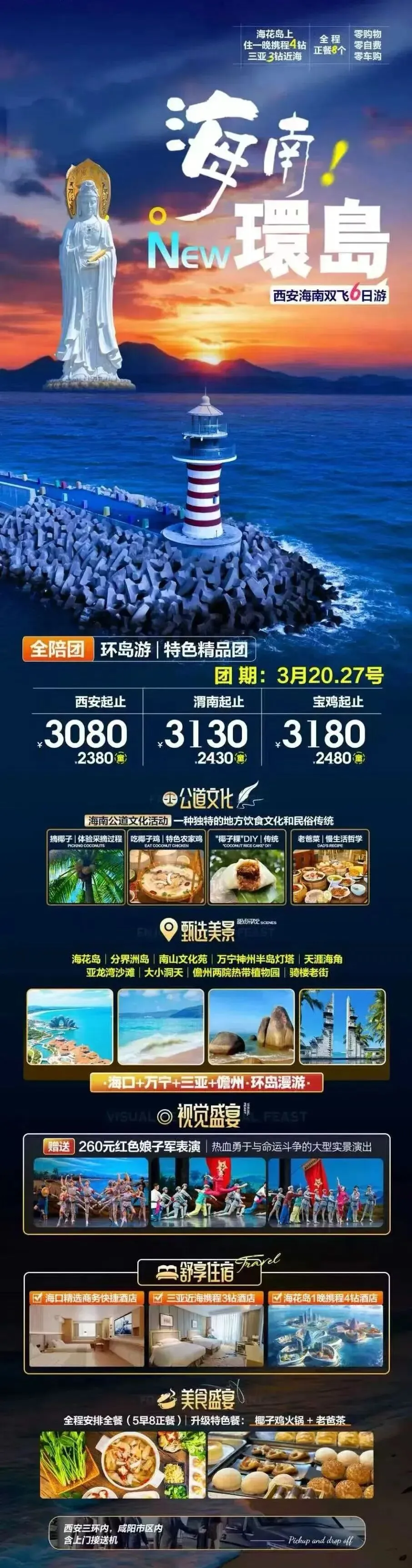 海南双飞六日游3080元/人