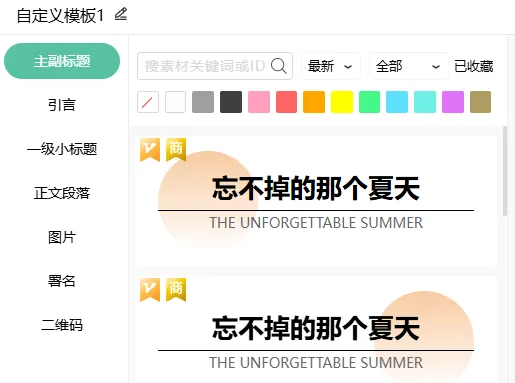 当然,也可以通过自定义模板功能,将自己喜欢的标题、正文段落、图片等模板样式,组合成一个新的模板。