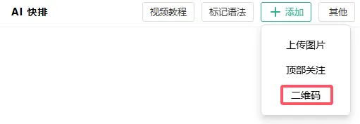 如果想要在文末添加自己的二维码,引导用户关注。可以直接在AI快排编辑器中,点击添加,然后点击二维码,上传自己的二维码,系统就会自动调整二维码图片的大小,以及给二维码添加样式。