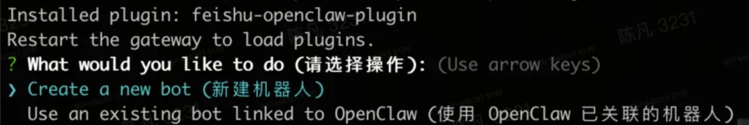 执行后会问你:新建机器人还是关联已有机器人。
