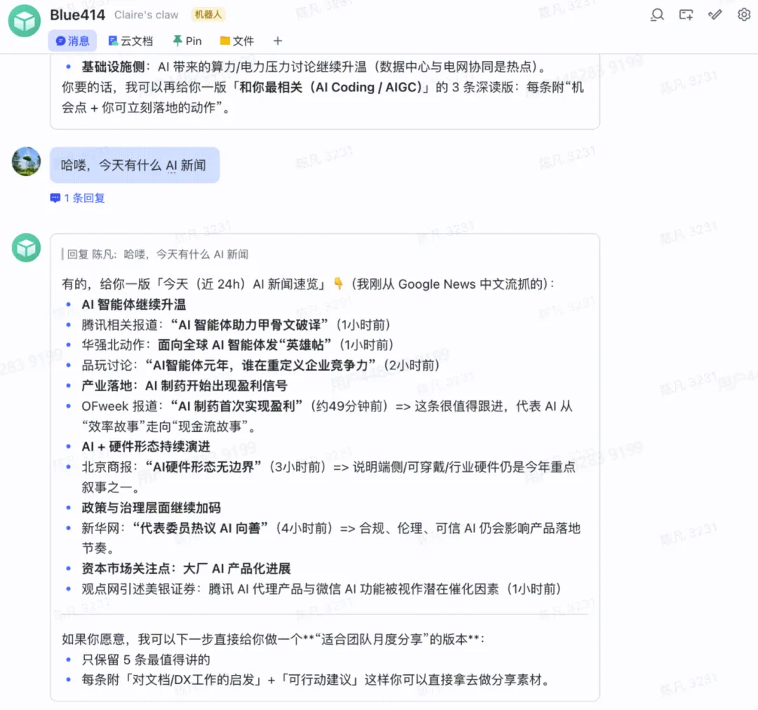 “群里刚才说了啥?”——它能翻聊天记录 -