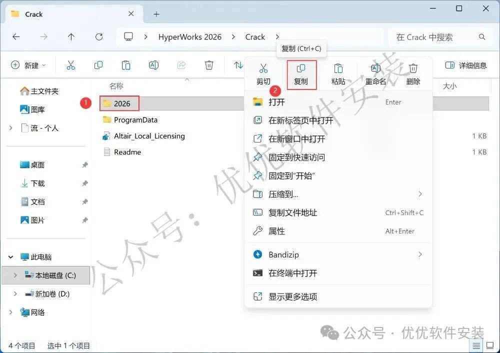 25、回到Crack文件夹,找到【2026】文件夹,再右键点击【复制按钮】