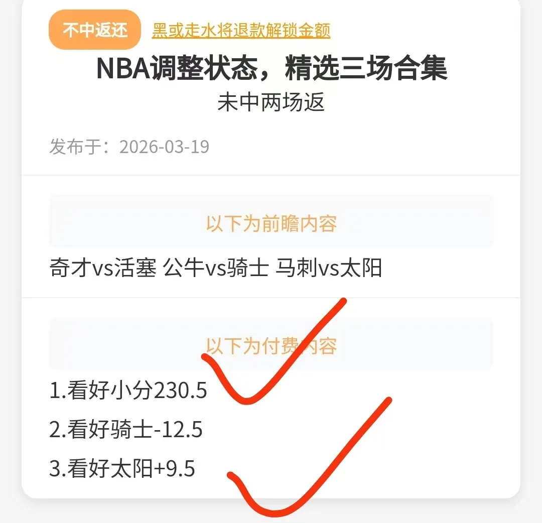 调整见效,晚场合集三场满贯+肉串连香!NBA3√2即刻反弹!五大联赛回归先送福利,公推两场组合呈现