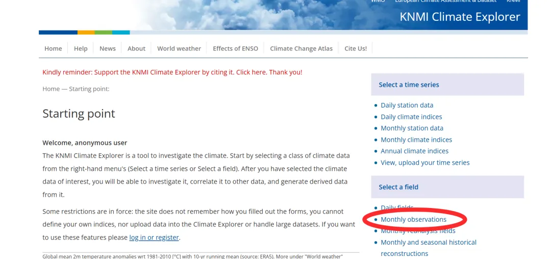 网址为:https://climexp.knmi.nl/start.cgi